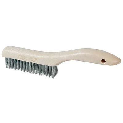 Ability One Scratch Brush: Curved Handle, Stainless Steel, Wood, 5 In Brush Lg, 10 1/2 In Handle Lg