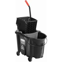 Rubbermaid Mop Bucket And Wringer: 8 3/4 Gal Capacity, Black, Side Press