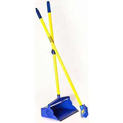 - Broom set cleans up with just soap and water or a chemical disinfectant