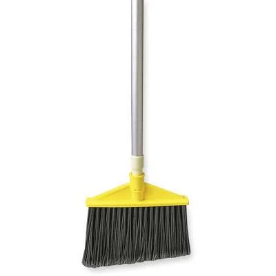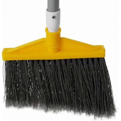 The Rubbermaid Commercial angle broom with polyethylene bristles and aluminum handle has sturdy bristles that are cut and shaped to make sweeping easier. Polypropylene bristles are both stain-resistant and designed for durability. These fusion-set, permanent bristles will not pull out of the broom handle. The sturdy handle resists breaking and wear.