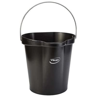 Hygienic Pail, Bucket Capacity 3 gal, Bucket/Pail Dia. 12 4/5 in, Bucket/Pail Length 12 3/4 in, Bucket/Pail Width 12 1/2 in, Color Coding System Yes, Color Black, Material Polypropylene, Shape Round, Includes Stainless Steel Handle