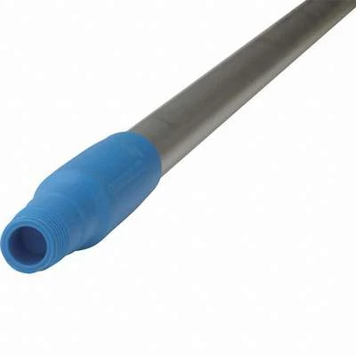 This standard broom handle can be used with all brooms, squeegees, and scrapers. The handle with the attached item should reach to the chin of the user to prevent occupational back injuries.