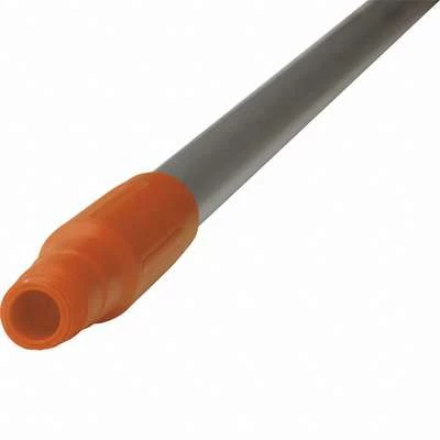 This standard broom handle can be used with all brooms, squeegees, and scrapers. The handle with the attached item should reach to the chin of the user to prevent occupational back injuries.