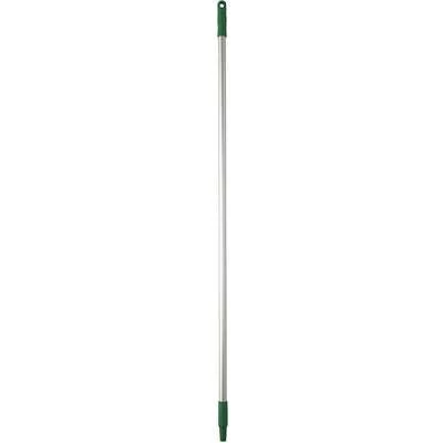 The Vikan® color-coded fiberglass handle is a FDA-compliant cleaning tool accessory ideal for cleaning where hygiene and cross-contamination is a concern. Color-coded system helps provide safety and easy identification. The handle with the attached item should reach to the chin of the user to prevent occupational back injuries. Aluminum handle is 57-1/2″L and includes a plastic threaded connection. Can be used with all brooms, squeegees, and scrapers.