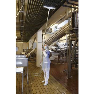 Squeegee with drain holes for effective removal of condensation from ceilings and pipes. Collection of condensation prevents moisture from dripping into food product or on costly machinery. Ideal for use where cross-contamination is a concern. Chemical and corrosion resistant.
