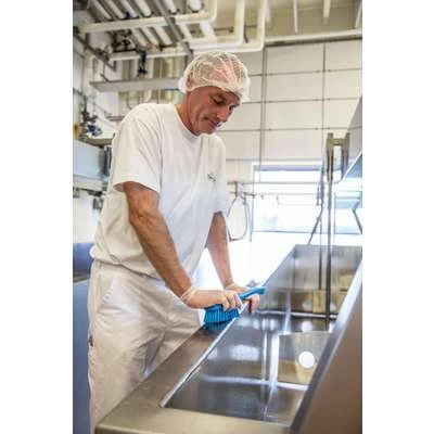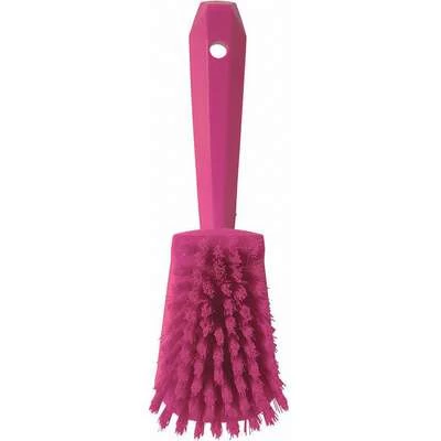 This fully color-coded, short-handled, wash brush has a comfortable grip allowing you to work for long periods of time without hand fatigue. The stiff bristles are great for washing all types of equipment, tables and walls. You can use the brush holding both the handle and the brush head to give you better control. Ideal for use where cross-contamination is a concern.