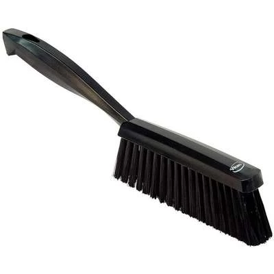 This is a dusting brush with a smooth, ergonomically designed handle. The medium strength bristles remove moist or medium sized particles, such as sugar, chocolate, pastry, vegetable peelings. It is also used as a dustpan brush on floors. Ideal for cleaning where hygiene and cross-contamination are concerns. Use it with other color-coded items for safety and easy identification.