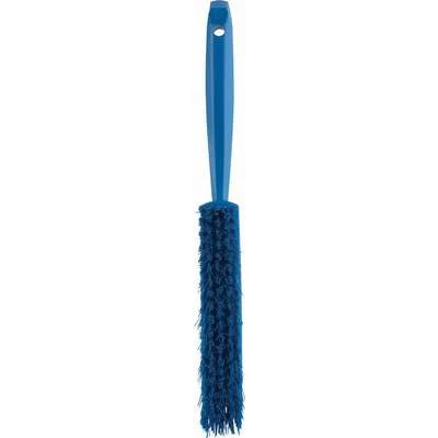 This is a dusting brush with a smooth, ergonomically designed handle. The medium strength bristles remove moist or medium sized particles, such as sugar, chocolate, pastry, vegetable peelings. It is also used as a dustpan brush on floors. Ideal for cleaning where hygiene and cross-contamination are concerns. Use it with other color-coded items for safety and easy identification.