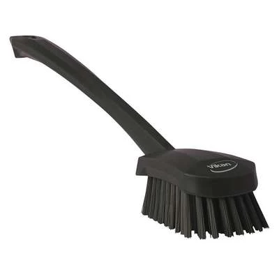 Scrub Brush, Bristle Firmness Stiff, Handle Style Angled, Bristle Material Polyester, Handle Material Plastic, Brush Length 4 1/2 in, Handle Length 11 3/4 in, Head Width 2 3/4 in, Bristle Color Black, Overall Length 15 3/4 in, Chemical Resistant Yes, Bristle Length 1 1/2 in, Brush Type Scrub Brush, Features Easily Scrub Stuck-On Particles, Handle Color Black, Surface Type Wet, Temperature Resistant Yes, FDA Compliant Yes, Acid Resistant Yes, Color Coding System Yes