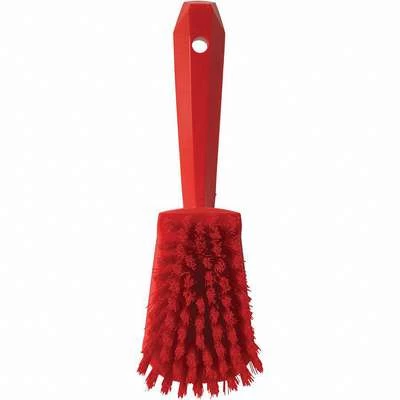 This fully color-coded, short-handled, wash brush has a comfortable grip allowing you to work for long periods of time without hand fatigue. The stiff bristles are great for washing all types of equipment, tables and walls. You can use the brush holding both the handle and the brush head to give you better control. Ideal for cleaning where hygiene and cross-contamination is a concern.